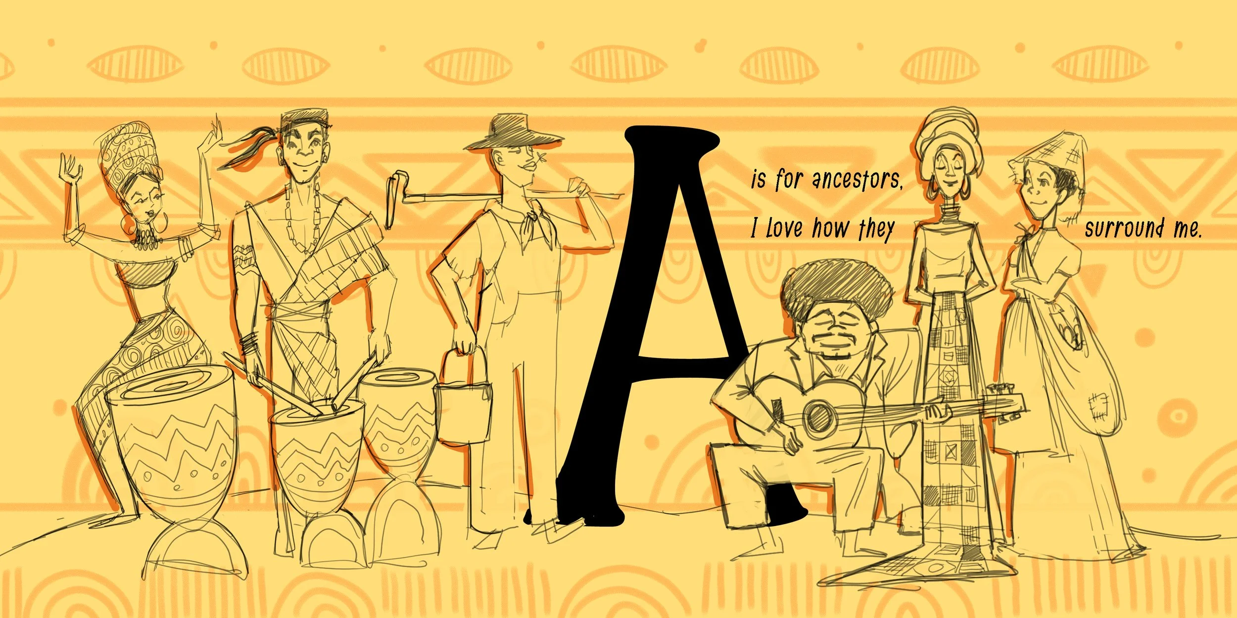 B Is for Baby Hair is an alphabet book celebrating Black culture, identity, and history through early learning. For this project, I developed the full visual direction—illustrations, sketches, and character studies—grounded in research of children’s facial features, natural hair textures, and clothing to ensure authenticity and respect.
